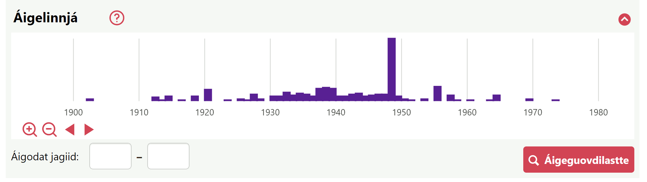 - Áigodatfilter aktiverejuvvo spoahkkalemiin ja sáhpániin geassimiin áigelinnjás, goas válljejuvvo áigodat. Dán maŋŋel spoahkkaluvvo Áigeguovdilastte-deaddinboallu, goas ohcan áigeguovdilastojuvvo ja bohtosiin čájehuvvo dušše dat, mat mannet namuhuvvon áigodahkii.