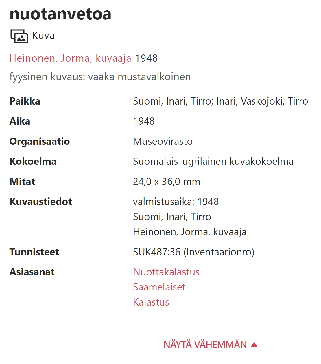 Hakuportaali kerää yhteen eri arkistoissa ja museoissa sijaitsevat saamelaisten kulttuuriperintöön liittyvät arkistomateriaalit ja mahdollistaa aineistojen hakemisen ja selaamisen yhdessä paikassa.